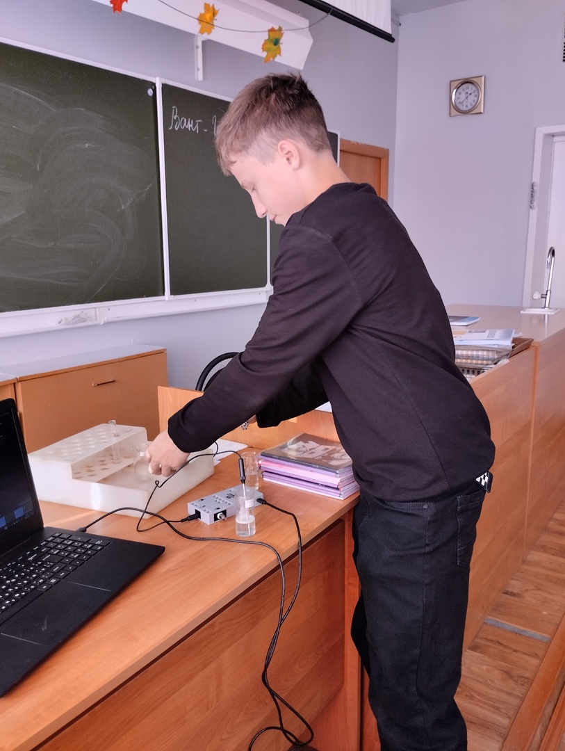 На уроке химии в 9-тых классах при изучении темы " Тепловой эффект химической реакции" обучающиеся проводили опыты с использованием оборудования цифровой лаборатории, которое поступило по проекту " Точка роста". Данные опыты наглядно показали реакции, протекающие с выделением и поглощением теплоты.